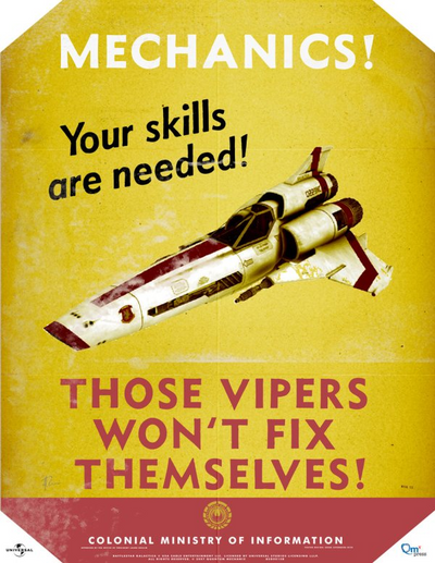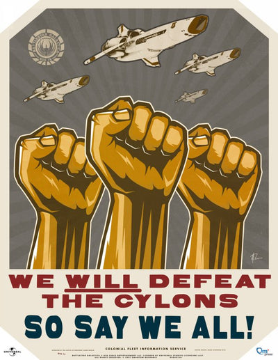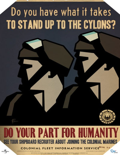 Help mee in de strijd tegen de Cylons! Toon je inzet voor de redding van de mensheid door deze posters op te hangen. Deze door het Ministerie van Informatie van de Koloniën uitgegeven posters tonen belangrijke berichten die kunnen helpen om andere kolonisten te rekruteren en te inspireren.