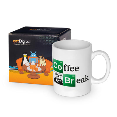 De "Coffee Break"-beker hoort dus in elk verzorgd drugslabor (en in jouw keuken). Van de beker kijkt het norse gezicht van een wereldberoemde drugsbaron je aan en herinnert je eraan wat je wilt bereiken. Zeg ons na: Ik ben het gevaar! Ik ben degene die klopt!