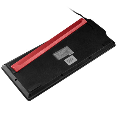 Mit der magnetischen Fußleiste anstelle der üblichen ausklappbaren Füßchen kannst Du Dein Keyboard nach Belieben aufbocken. Die Leiste bietet dabei einen stabileren Stand als Füße. Als kleines Extra dient die Fußleiste auch als Lineal, was sich als ziemlich praktisch herausstellt. Die breite Fußleiste sorgt zusammen mit der besonderen Gehäusestruktur außerdem dafür, dass die Tastatur nicht unter Deinen Händen zu vibrieren beginnt, sondern schön stabil auf dem Schreibtisch steht.