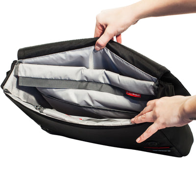 Die Tasche lässt sich mit Fidlock-Technologie verschließen und öffnen. Ein einfaches Ziehen mit nur einer Hand reicht aus um die Tasche zu öffnen, durch einen Magneten verschließt sie sich aber fast von selbst - man muss aber wissen wie, was es für Diebe schwer macht.