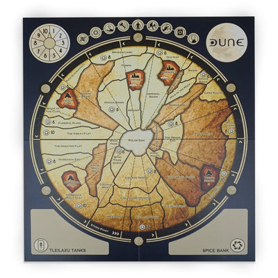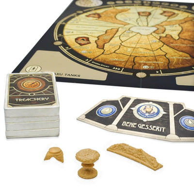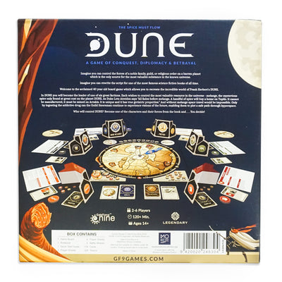 In diesem komplexen Dune Brettspiel kannst du dein Wissen um die berühmte Romanreihe von Frank Herbert und/oder David Lynchs ikonische Verfilmung für dich nutzen, um strategisch gegen deine Gegner vorzugehen. Dafür brauchst du mindestens einen und maximal fünf weitere Mitspieler. Jeder von euch repräsentiert eine politische Fraktion bzw. ein Haus und muss versuchen, seine Interessen durch die Platzierung seiner Truppen, den Einsatz von Spice, und die beiliegenden Battle Wheels durchzusetzen. Dabei bewegt ihr euch auf dem Brett über eine detaillierte Karte des Wüstenplaneten! Alle Spielkarten und die Anleitung sind in englischer Sprache verfasst.
