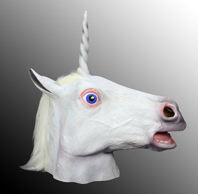 • Originele Archie McPhee eenhoorn masker van latex met manen van kunsthaar.