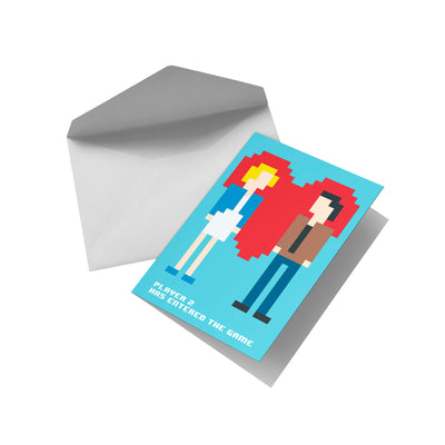 Auch Kellerkinder und nahezu komplett digital lebende Individuen freuen sich ab und zu über eine handgeschriebene Karte aus Papier. Wenn sie denn gewisse optische Ansprüche erfüllt, das heißt, weder glückliche Katzen noch taubetropfte Blüten oder Schnörkelornament zeigt. Diese Exemplare haben zum Glück nichts mit den kitschigen Karten aus dem Supermarkt gemein, sondern zeigen natürlich nur echt geekige Motive in schlichtem graphischen Design. Jede der Klappkarten kommt mit Umschlag.