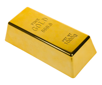 • Deurstopper of paperweight in de vorm van een goudstaaf.