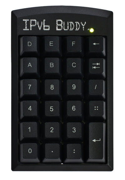 Om deze verandering wat gemakkelijker te maken, is er nu de draagbare IPv6 Buddy. Dit toetsenborduitbreiding kan eenvoudig via USB worden aangesloten en is dan, net als het numerieke toetsenblok, voorzien van de bij IPv6 passende letters en cijfers.