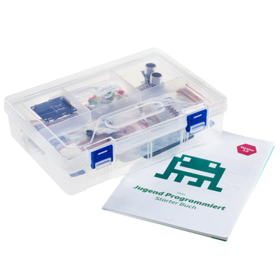 Das Jugend Programmiert Starterkit V2 bietet allen Interessierten (auch denen, die ihre Jugend hinter sich gelassen haben) den perfekten Einstieg in die Welt des Programmierens. Basierend auf dem kreditkartengroßen und günstigen Minirechner Raspberry Pi (nicht enthalten) lassen sich mit den im Kit enthaltenen Bauteilen eine Vielzahl an interessanten und nützlichen Experimente durchführen. Angefangen beim An- und Ausschalten von LEDs per Programmbefehl bis hin zu Entfernungsmessungen und Alarmanlagen ─ mit diesem Set wird Dir so schnell nicht langweilig!