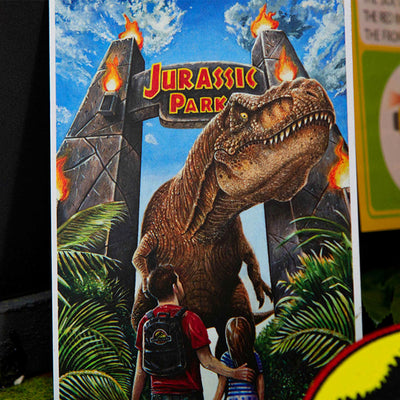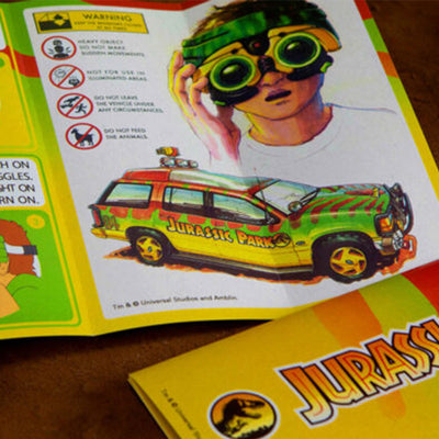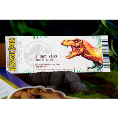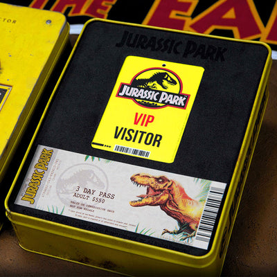 Mach dich bereit für deinen ersten Tag im Jurassic Park mit Hilfe des offiziell lizenzierten Jurassic Park Willkommenspakets. In einer exklusiven Metallbox befinden sich viele verschiedene Fan-Artikel und Nützliches für deinen ersten Besuch im Dino-Park! Neben Selbstverständlichkeiten wie Eintrittskarte, Willkommensbrief und Geländeplan verfügst du als Besitzer dieser Box auch über alle möglichen Souvenirs, wie ein Banner, Aufkleber, eine Postkarte, oder Dino-Buttons. So eine vielseitige und bunte Sammlung findet man nicht alle Tage, ungefähr so oft wie einen zahmen Velociraptor. :D