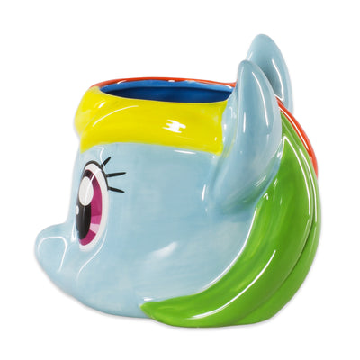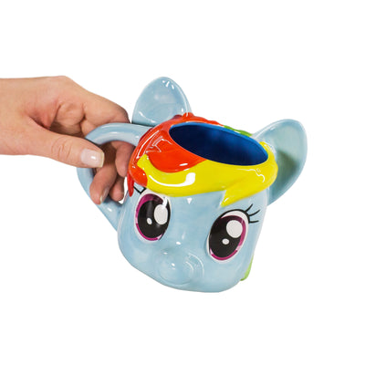 Mogelijk maakt het de My Little Pony Rainbow Dash 3D-beker. Deze beker, die is gemodelleerd naar het hoofd van de gelijknamige Pegasus-pony, heeft een inhoud van maar liefst 530 ml! En net als Rainbow Dash zal deze beker je trouw terzijde staan en alle wolken verjagen die je start van de dag zouden kunnen bedreigen. Dus onthoud altijd: vriendschap is magie! Dan kan niets je dag nog verpesten. :)