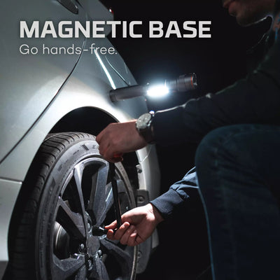 Im Gegensatz zu den herkömmlichen batteriebetriebenen Taschenlampen ist die NEBO Franklin Slide über das enthaltene Micro-USB-Kabel aufladbar und mit bis zu 60 Stunden Betrieb zwischen den Ladevorgängen nicht nur zuverlässiger, sondern auch nachhaltiger. Sie verfügt außerdem über eine leistungsstarke Magnetbasis, mit deren Hilfe die Taschenlampe auf magnetischen Oberflächen fixiert werden kann, sodass du die Hände frei hast. Und wenn du sie kurz verstauen musst, kannst du dafür einfach den einziehbaren Clip verwenden.
