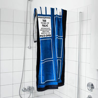 • Strand- und Badehandtuch im Design einer zeitreisenden Polizeibox aus einer britischen TV-Serie