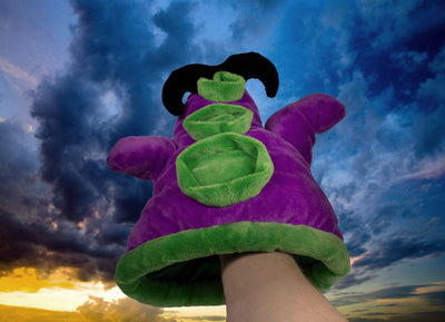Leistungsvermögen: Der kleine Purpurtentakel ist auf der Unterseite für mehr Stabilität mit Granulat gefüllt, die Handpuppe kann mit drei Fingern für den Kopf und die Tentakelarme "zum Leben" erweckt werden.