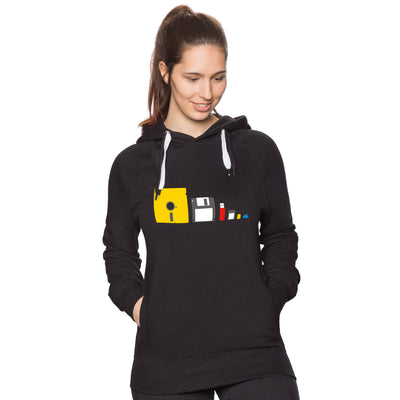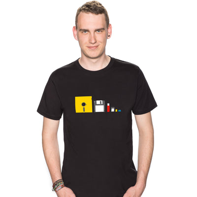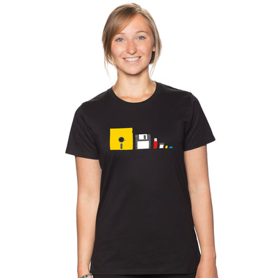 Daarom toont ons shirt niet alleen de evolutie van opslagmedia, het is ook een herinnering aan de goede oude kleurrijke diskettes en sticks. :)