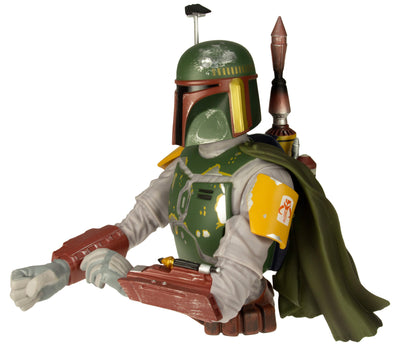 Dieser Aufforderung solltest Du unbedingt nachkommen, denn es wird sich für Dich lohnen! Im Inneren dieser Boba Fett Büste ist nämlich ganz viel Raum für Münzen und sogar Scheine, die Du einfach in den Schlitz über seinem Raketenrucksack steckst. Niemand wird besser auf Deine Ersparnisse aufpassen, als Boba, das kannst Du uns glauben!