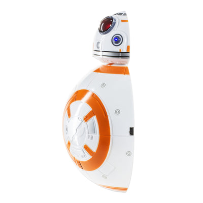 Aus Versehen hat sich der kleine Schelm in Dein Zimmer verirrt. Durch den zugehörigen Aufkleber wirkt es so, als wäre er direkt durch Deine Wand gesprungen und hätte dort Risse hinterlassen. Ja, er kann schon etwas frech sein, der Astromech-Droide. Das angenehme Licht, dass Dir BB-8 spendet, kommt aus der etwas größeren, roten und der etwas kleineren, blauen LED. Diese sitzen oben am Kuppelkopf.