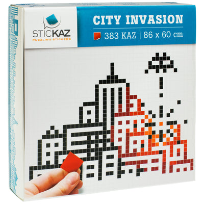 Met deze set kun je eindelijk de geliefde pixels uit de computer in de werkelijkheid halen. Alles wat je daarvoor nodig hebt is een pen, een geodriehoek en de Stickaz Wandstickers City Invasion.