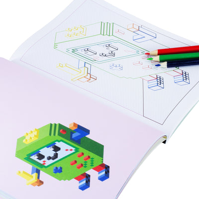 • Ausmalbuch mit 96 Seiten voller nostalgischer Pixel-Art