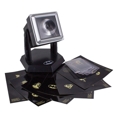 Mit dem DC-Projektionslicht können diese Wünsche zur Realität werden! Denn dieses Mini-Batsignal kann nämlich nicht nur das Fledermaus-Logo an die Wand projizieren, sondern insgesamt 24 verschiedene Symbole aus dem DC-Universum! Dazu musst Du einfach nur die beiliegenden Kunststoff-Scheiben mit dem gewünschten Aufkleber bestücken und anschließend ähnlich wie bei einem Dia-Projektor vor der LED-Lichtquelle befestigen. Jetzt noch flugs 3 AAA-Batterien (nicht enthalten) eingesetzt und Superman, der Joker, Flash und Co. werden in Windeseile vor Deiner Tür stehen!