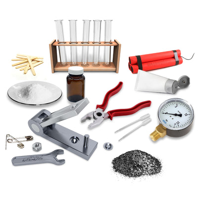 • Inklusive Graphitpulver, Carbonyleisen, Trinitrotoluol, Reagenzgläsern, Werkzeug und einer Diamantenpresse