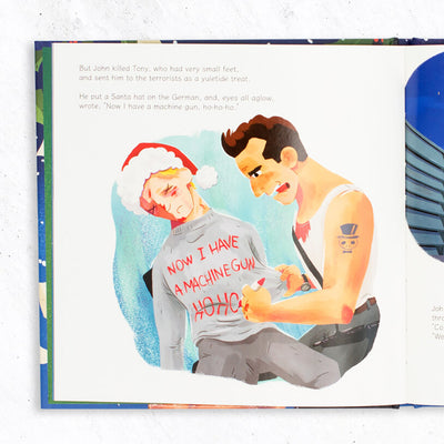 Denn das „Stirb langsam“-Weihnachtsbuch mit Plüschfigur verwandelt den klassischen Action-Film rund um die Geschehnisse im Nakatomi Plaza in ein herzerweichendes Bilderbuch mit englischen Reimen, das die Abenteuer John McClanes (halbwegs) kindgerecht aufbereitet. Durch den niedlichen Zeichenstil sieht sogar der Oberbösewicht Hans Gruber fast (!) freundlich aus. Als kleines Extra liegt in dieser Special Edition auch noch eine Plüschfigur von John McClane bei, die Du mit einem Saugnapf am Fenster oder direkt an der Frontscheibe Deines Autos befestigen kannst. Somit kannst Du das ganze Jahr über in Weihnachtsstimmung bleiben! :)