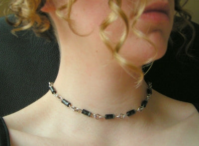 Du möchtest aller Welt zeigen, dass es auch weibliche Geeks gibt? Dann solltest Du dir unbedingt eine Diodenhalskette zulegen! Die enganliegende Kette besteht aus echten schwarzen Dioden, die über S-förmig gebogene Drähte aus rostfreiem Stahl verbunden sind.