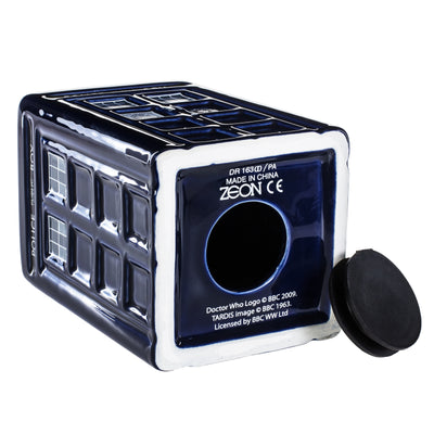 Sobald Du die Früchte eiserner Spardisziplin ernten willst, kannst Du die TARDIS einfach an der Unterseite öffnen, wo sie mit einem leicht zu entfernenden Gummistopfen verschlossen wird. Es dauert aber natürlich ein bisschen, bis die Spardose voll ist. Es sei denn Du hast Glück und erwischst doch ein Exemplar, das Dein Geld durch Zeit und Raum auf wunderbare Weise vermehrt. Natürlich ist auch diese Miniatur-TARDIS wie ihr großes Vorbild mit allen nötigen Schildern und Hinweisen versehen.