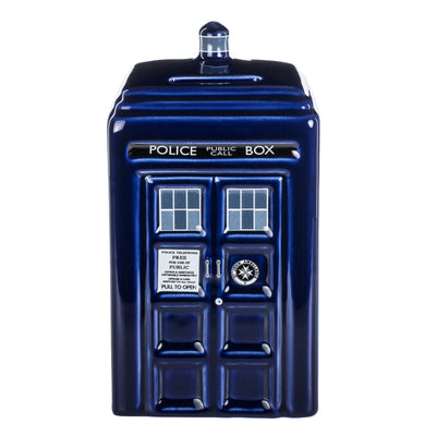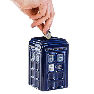 Die altbekannte Police Box aus Doctor Who besteht aus Keramik und steht so schön schwer und nobel glänzend auf Deinem Schreibtisch oder neben der DVD-Sammlung im Regal. Obwohl Briten dem Euro nichts abgewinnen können, nimmt sie gnädigerweise auch diese schnöde kontinentale Währung an. Der Schlitz ist relativ groß, Du kannst also auch gefaltete Geldscheine oder alte 5-Mark-Stücke einwerfen. ;)
