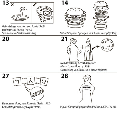 Zumindest bei allen nerdigen Anlässen kann dir der getDigital-Nerdkalender 2021 unter die Arme greifen! Auf den Seiten dieses Kalenders im A3-Format findest du nämlich alle Nerd-Feiertage, Jubiläen, geplante Kinostarts und andere Dinge, die zum Nerd-Allgemeinwissen gehören. Neben Klassikern wie Darwins Geburtstag oder dem Star Wars-Tag erwarten dich auch ausgefallenere Dinge wie der Erscheinungstag von Tetris oder der Ask a Stupid Question Day!