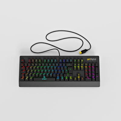 • Hochwertige, programmierbare mechanische Tastatur mit von getDigital entwickelter Krümelschublade und RGB Beleuchtung
