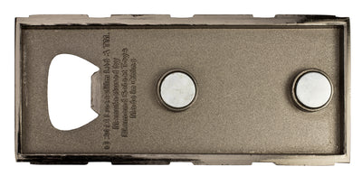 • Massiver, detaillierter Flaschenöffner mit zwei Magneten auf der Rückseite.