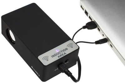Wenn Du keine Batterien, dafür aber einen Computer zur Hand hast, dann kannst Du den Induktionslautsprecher auch via USB betreiben. Mit Hilfe eines Klinkensteckers ist es ebenfalls möglich, Deinen MP3-Player, Tablet, Notebook und Ähnliches anzuschließen (dann erfolgt die Tonausgabe allerdings nicht über Induktion). Das benötigte Kabel ist bereits im Lieferumfang enthalten.