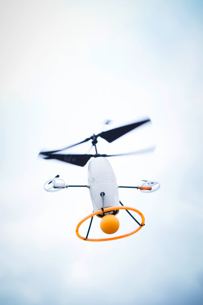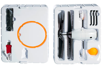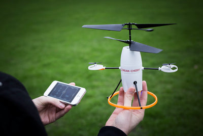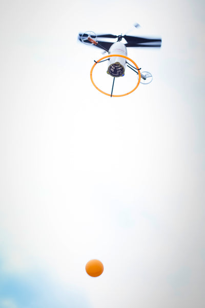 Sollte das Landen Dir am Anfang noch Probleme bereiten, kannst Du einfach ein Trainingsrad unten anbringen. Bist Du irgendwann schon ein richtiges Fliegerass geworden, kannst Du mit einem Tischtennisball Schabernack treiben. Wirf diesen zum Beispiel über Deinem Mitbewohner ab - oder versuche zielgenaue Punktlandungen in kleinen Gläsern.