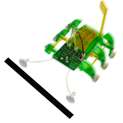 Der Bumper Bug ist die perfekte Mischung aus technischer Raffinesse und insektoidem Äußeren mit einer Länge (inkl. Fühler) von ca. 20cm. Aktiviert man ihn, setzt er sich in Bewegung und ist Dank seiner sensiblen, drahtigen Fühler fähig, Hindernisse zu erkennen und ihnen selbstständig auszuweichen.