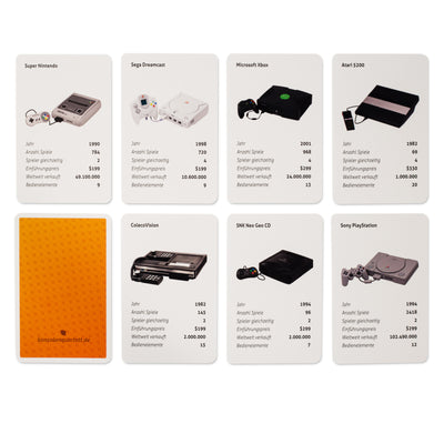 Das Spielprinzip folgt dem altbekannten Supertrumpf: Eine Kategorie wird ausgewählt und wer den höchsten Wert hat, gewinnt die Runde. Kategorien sind z.B. die Zahl der Spieler, der Einführungspreis, die Zahl weltweit verkaufter Exemplare und die Bedienelemente.