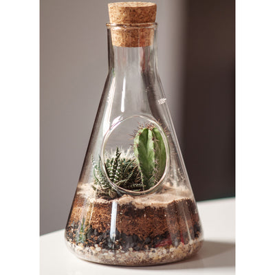 Mit dem Laborglas Terrarium Anbauset geht das sogar. Damit kannst du dir nämlich einen eigenen sogenannten Glasgarten zusammenstellen. Darin leben die Pflanzen in ihrem eigenen Ökosystem und recyceln sogar ihr Wasser, sodass du kaum gießen musst. Passend für die Chemiebegeisterten unter uns Nerds, hat dieser Flaschengarten die Form eines Erlenmeyer-Kolbens.
