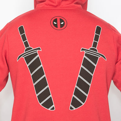 Erledigt? Gut, kommen wir zum nächsten Schritt: Den Marvel Deadpool Jumpsuit anziehen! Dieser flauschig weiche Overall mit Kapuze lässt Dich im Handumdrehen zu einer perfekten Kopie Wade Wilsons werden! Sogar die Schwerter auf dem Rücken sind am Start! Vorausschauend wie immer *zwinker* hat Deadpool sogar dafür gesorgt, dass der Anzug dank Einheitsgröße so gut wie allen Rekruten passt! Schritt Nummer 3: Lerne, die perfekten Chimichangas zuzubereiten... ;)