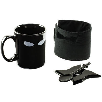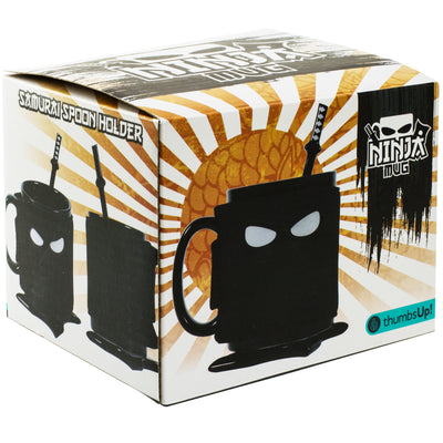 Da ein Ninja für alle Fälle gerüstet ist, egal ob hinterhältige Angriffe oder empfindliche Oberflächen, gehört außerdem ein Wurfstern, Shuriken, aus Keramik zum Set, der als Untersetzer dient.