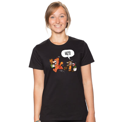 Schon als Kinder haben wir gelernt, dass man keine Süßigkeiten von fremden Menschen annehmen soll und auf keinen Fall mit ihnen mitgehen soll. Sieht so aus, als ob der kleine Baummensch auf dem Pflanzentausch-T-Shirt bei dieser wichtigen Lektion nicht aufgepasst hat - schließlich tanzt er fröhlich weiter, während sich der italienische Klempner Mario mit ihm aus dem Staub macht.