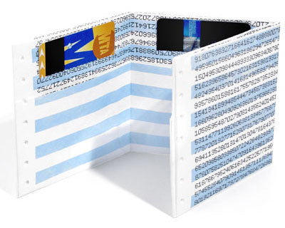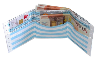Das Design dieser Geldbörse wurde dem alten Endlosdruckerpapier nachgeahmt und auf dem Papier befinden sich die ersten 3000 Zeichen von Pi, gedruckt in Nadeldruckeroptik. Das Portemonnaie hat 6 Plätze für Kreditkarten sowie ein Fach für Geldscheine, welches es durch eine Lasche ermöglicht, die Scheine zu verstecken und zu sichern. Das Material ist wasserabweisend und leicht dehnbar, so dass es sich dem Inhalt perfekt anpassen kann. Bitte beachte, dass kein Fach für Münzen vorhanden ist.