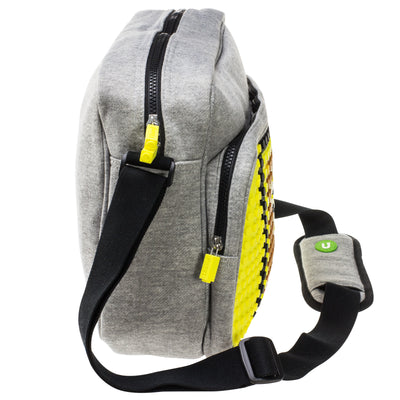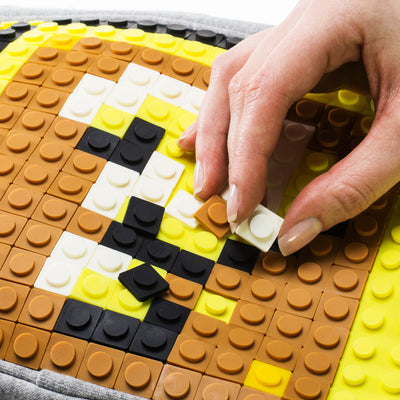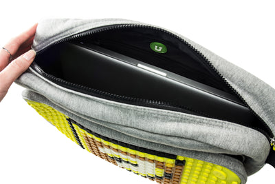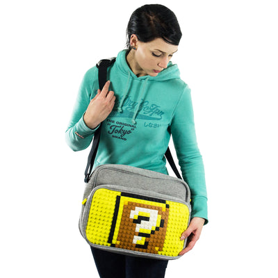 Die große Umhängetasche bietet kreativen Platz für 364 Pixel auf der Noppen-Silikonplatte. Zu jeder Tasche gibt es außerdem eine gratis Packung verschiedenfarbiger Pixel mit Gestaltungsvorschlägen dazu, so dass Du direkt beginnen kannst! Welche gratis Pixel Du erhältst ist dabei dem Zufall überlassen; es sind aber immer zu den Pixeln passende Vorlagen enthalten um zum Beispiel Motive wie auf unseren Produktfotos zu erstellen.
