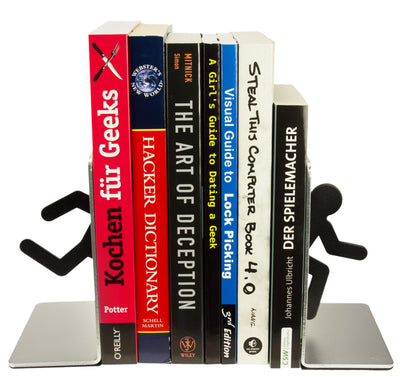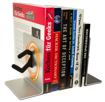 Positioniere die Buchstütze mit dem orangefarbenen Portal auf der linken Seite einer Bücherreihe und die Buchstütze mit dem blauen Portal auf der rechten Seite. Der Effekt ist folgender: Deine Bücher (oder DVDs, Games, Kassetten...) werden aufrecht im Regal stehen. Jedenfalls sollte das so sein. Wenn nicht, machst Du womöglich irgendetwas falsch. Außerdem sieht es so aus, als ob ein Testsubjekt durch die Bücher portieren würde. Vielleicht passiert das sogar wirklich, das hängt davon ab, wie sehr die Bedingungen in Deinem Zimmer denen bei Aperture Science ähneln. Wir hoffen allerdings für Dich, dass Du es besser getroffen hast.