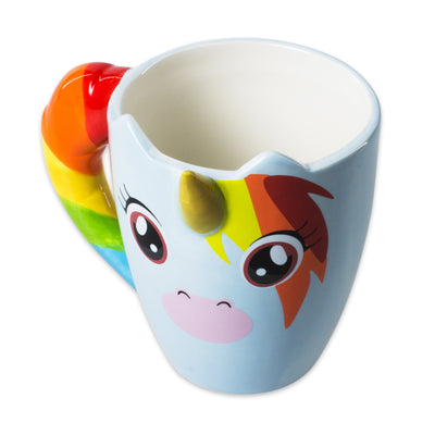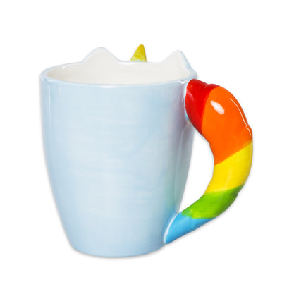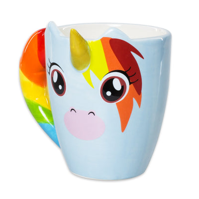 Natürlich verdienen ultimative Fabeltiere und ihre Fans auch einen ultimativen Becher: den Regenbogen-Einhorn Becher! Dieser rundum bedruckte Becher erstrahlt in himmlischem Blau und zeigt das Konterfei eines echten Einhorns, das mit seiner kecken Haartolle und dem Regenbogenschweif Stilsicherheit hoch zehn beweist. Aber es gibt noch mehr zu entdecken: Das putzige Einhorn verfügt über ein dreidimensionales Horn, das aus dem Becher hervorragt und förmlich dazu einlädt, Löffel darauf zu balancieren, Teebeutel festzubinden und Eheringe aufzuhängen. Du siehst also: Auch im Bereich der Haushaltsgegenstände können Einhörender auf ganzer Linie überzeugen.