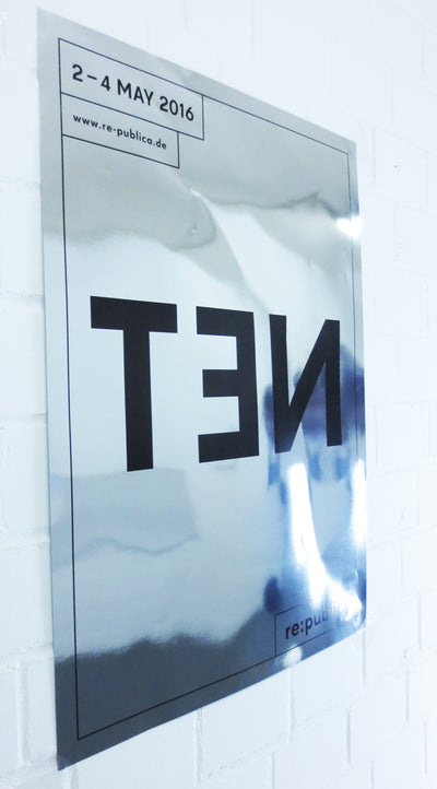 Das "TEN", der Themenname der re:publica 2016, steht für die zehnte Ausgabe des Events. Gespiegelt ergibt sich aus dem Schriftzug das Wort "NET".