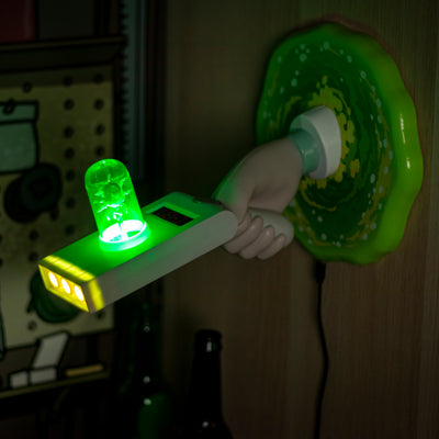 Damit Du auch ein bisschen Spaß mit Portalen haben kannst, gibt es die Rick and Morty Portal-Gun-Lampe! Rick höchstpersönlich reicht Dir diese Lichtquelle durch ein kleines Portal - was Du damit anstellst, musst Du entscheiden. Du kannst die Lampe entweder frei aufstellen oder an der Wand befestigen und Dich von nun an über stilvolle Beleuchtung freuen. Die Stromversorgung erfolgt wahlweise über das enthaltene USB-Kabel oder drei AA-Batterien (nicht enthalten). Alternativ kannst Du die Lampe natürlich auch mit einem Plumbus kombinieren! :)