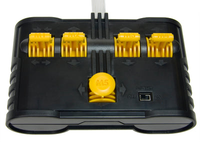 Der Roboter Arm ist über einen 95cm langen Strang Flachbandkabel mit seiner Steuereinheit verbunden, von der aus er mit 5 Schaltern bedient werden kann.