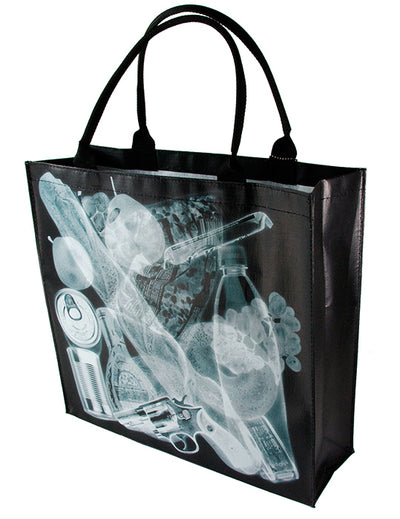 Erspare doch dem netten Sicherheitsbeamten die Untersuchung Deiner Tasche, indem Du diese Einkaufstasche mit Aufdruck des Inhalts in typischer Röntgenansicht benutzt. Du solltest aber vielleicht eine gute Erklärung für die Pistole bereithalten...