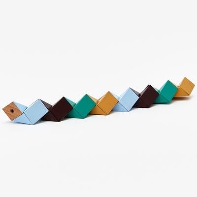 Wer auf die Idee gekommen ist, dass Atome die Bausteine des Universums sind, hat garantiert noch nie von den Snake Blocks 3D Puzzles gehört. Keine Sorge, das sind keineswegs mikroskopisch kleine Schlangen, die von unseren reptiloiden Herrschern aus dem Inneren der Erde geschickt wurden. *Zwinker* Nein, bei diesen Schlangen handelt es sich um farbige Buchenholzblöcke, die mit einem Gummiband verbunden sind. Klingt erstmal gar nicht so spannend, oder?