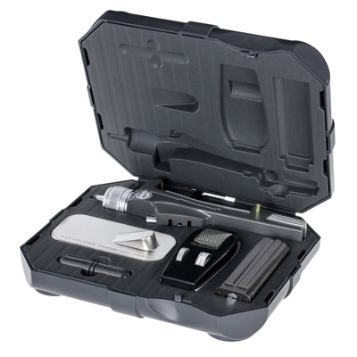 Dein ganz eigener Phaser kommt gut gepolstert in einem edlen Koffer. So wie auch Mr Spock und die anderen Crew-Mitglieder ihre Waffe in Empfang genommen haben. Um Verwechslungen zu vermeiden, kannst Du Deinen Namen auf dem Koffer eintragen. Natürlich musst Du Deinen Phaser selbst montieren. Das geht mit der beiliegenden Anleitung aber kinderleicht. Der Griff und weitere Bestandteile sind aus schwerem gebürsteten Metall, sodass der Phaser ein angenehmes Gewicht von gut 390 g besitzt. Mit dem magnetischen Ständer kannst Du den Phaser wirkungsvoll abstellen - aber Du wirst ihn sowieso nicht mehr aus der Hand legen wollen.