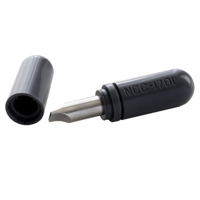 Aufgeladen wird der Phaser ganz modern über USB. Du brauchst also keine Batterien - die gibt es auf der Enterprise schließlich auch nicht. Das erste Laden dauert ca. 2 Stunden. Sobald das Licht grün blinkt, ist der Phaser einsatzbereit. Ein schönes Extra, das Du zum Zusammenbau des Phasers benötigst, ist der beiliegende Schraubenzieher mit Verschluss-Kappe und NCC-1701-Schriftzug. Den kannst Du praktisch in der Hosentasche herumtragen und bei Bedarf wirkungsvoll zücken, natürlich nicht, ohne beiläufig auf den fantastischen Phaser zu verweisen, der Zuhause auf Dich wartet. ;)