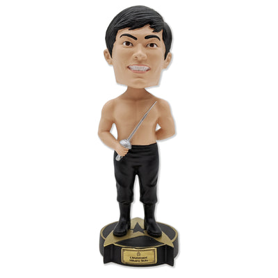 In dieser Folge verlieren Teile der Besatzung auf mysteriöse Art und Weise ihre Hemmungen – und bei Sulu führt dies dazu, dass er sich für einen Musketier hält und mit gezücktem Florett und nacktem Oberkörper die Gänge der Enterprise unsicher macht. Und genau diese legendäre Szene war die Inspiration für diesen Wackelkopf. Zu 100 Prozent unanrüchig und familientauglich. Naja, fast. ;)