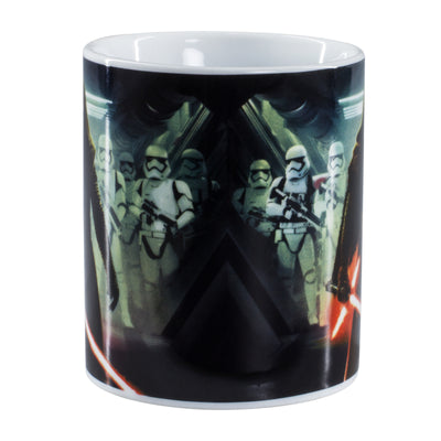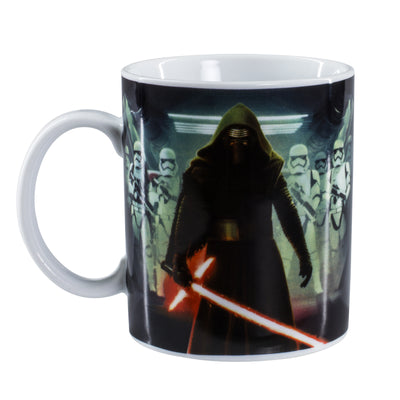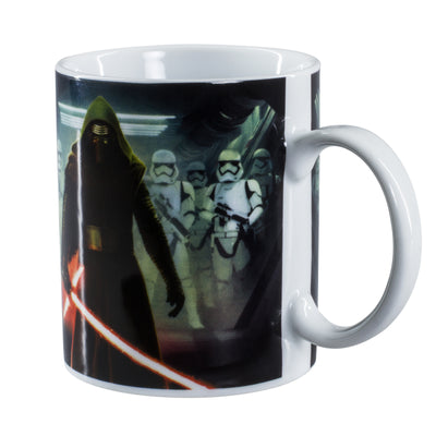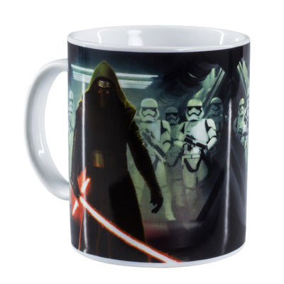 • Der Becher ist rundum bedruckt und zeigt vorne und hinten dasselbe Bild mit Kylo Ren und Stormtroopern.